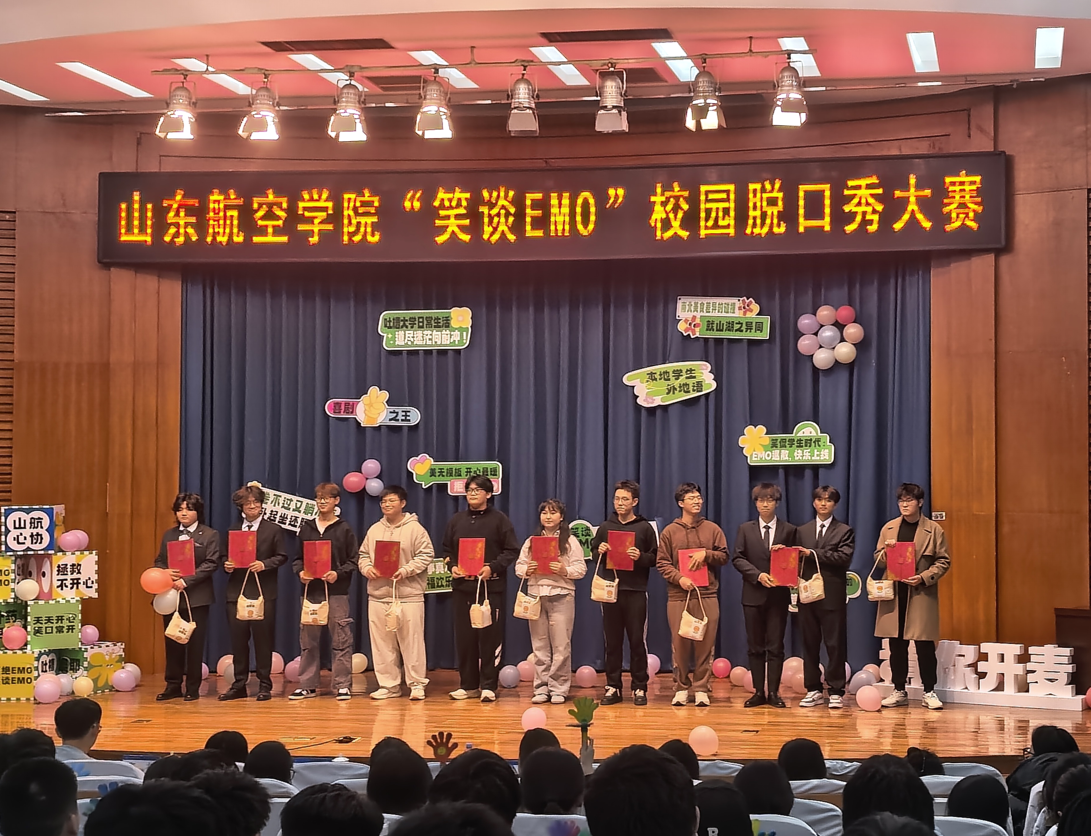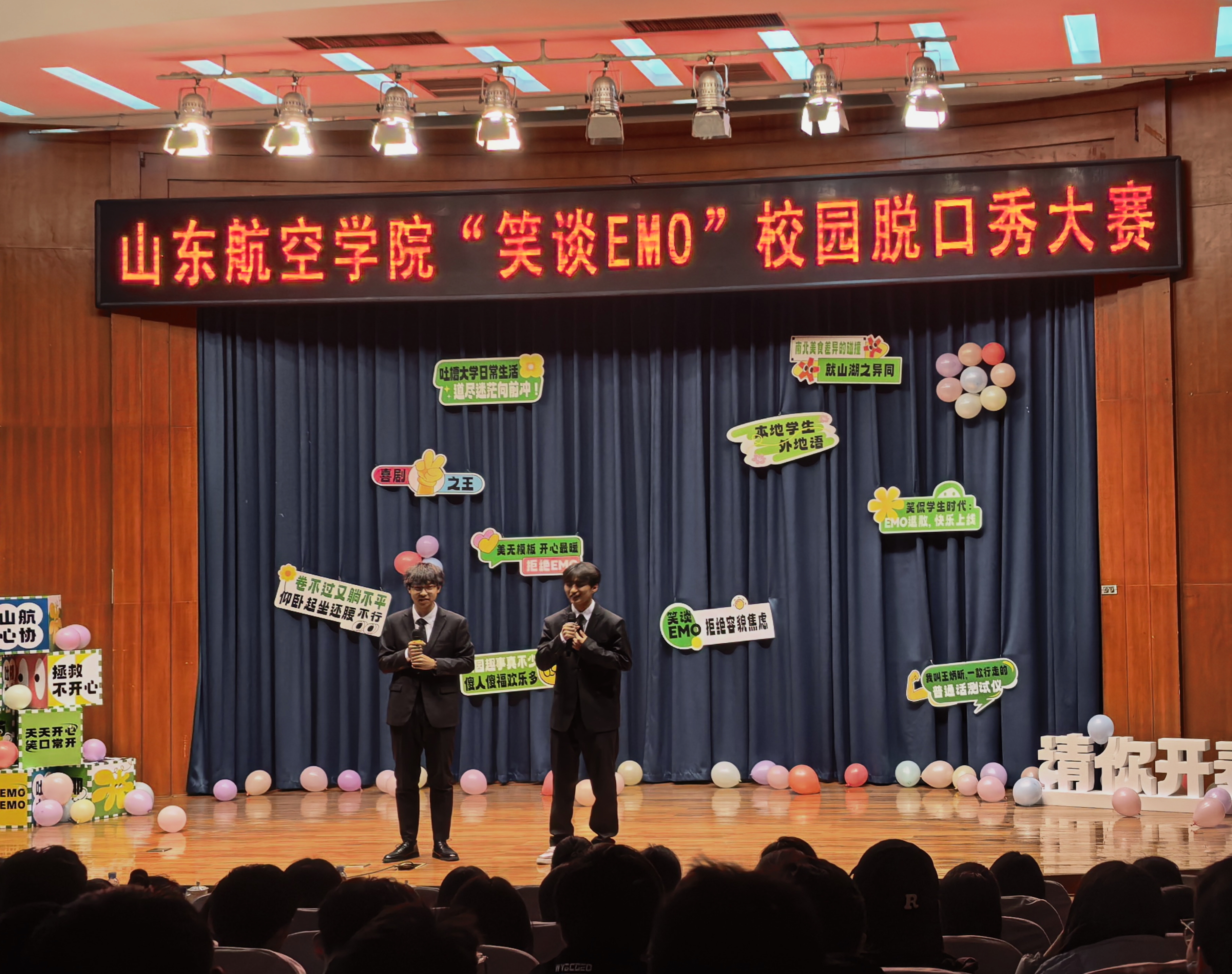 为丰富校园文化生活,疏解学生学习生活中的负面情绪,11月10日,山东航空学院“笑谈EMO”脱口秀大赛在明德报告厅圆满举办。我院25生技本4班察子航、刘翊阳两位同学代表学院参赛,凭借扎实的舞台表现喜获校级三等奖。