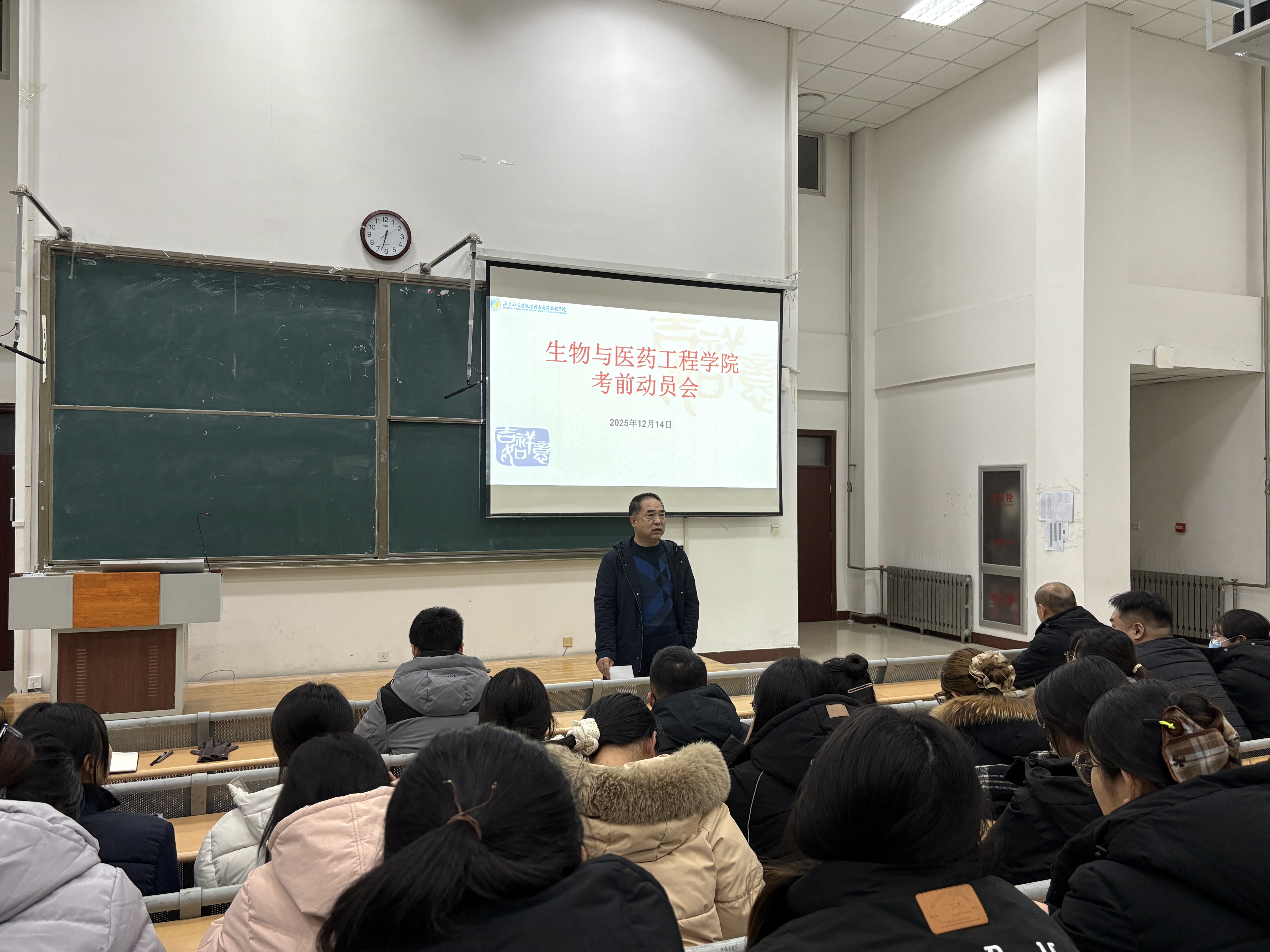 为切实做好考前保障工作,提振备考末期考试信心,帮助考生准确掌握考试规范、全面了解备考要求,12月14日,生物与医药工程学院在8教305室召开筑梦青春,研途有你考前动员会暨毕业班全体大会。学院党委书记李炳斋、教学秘书赵丽萍、辅导员满强出席会议,22级各班班主任与会指导。