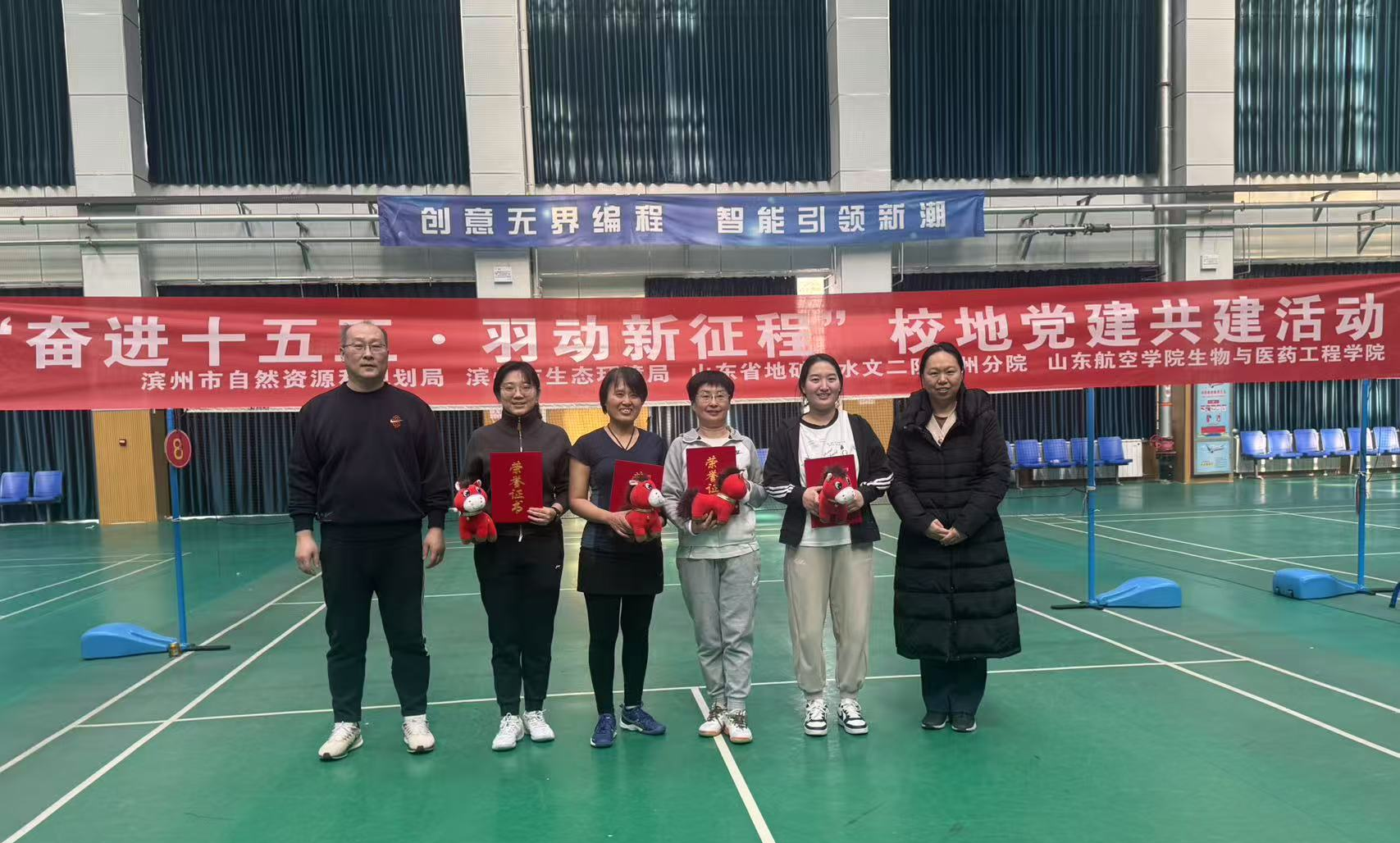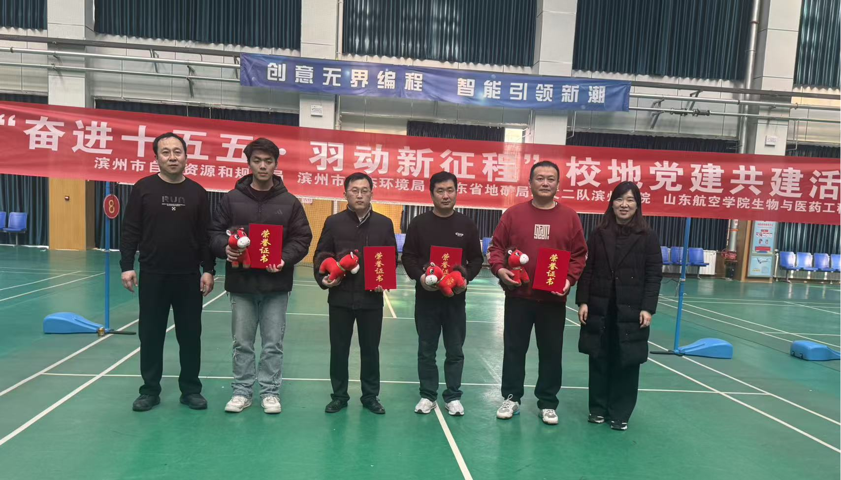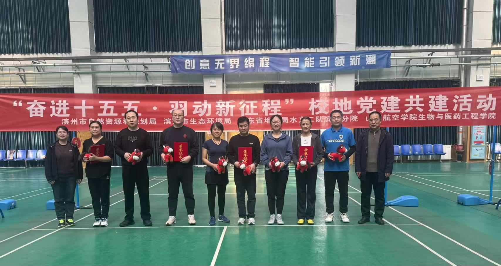 为深入学习贯彻党的二十大精神和二十届历次全会精神,深化校地党建共建实效,营造导学同行共进风范,1月17日,生物与医药工程学院在励学综合体育馆成功举办“‘奋进十五五’·羽动新征程”校地党建共建活动暨第三届研究生导学羽毛球比赛。滨州市生态环境局副局长王勇,滨州市自然资源和规划局工会主席史建明,山东省地矿局水文二队滨州分院院长刘苏哲,山东航空学院研究生处处长闫永利,生物与医药工程学院领导班子等出席活动。活动由生物与医药工程学院副院长刘京涛主持。