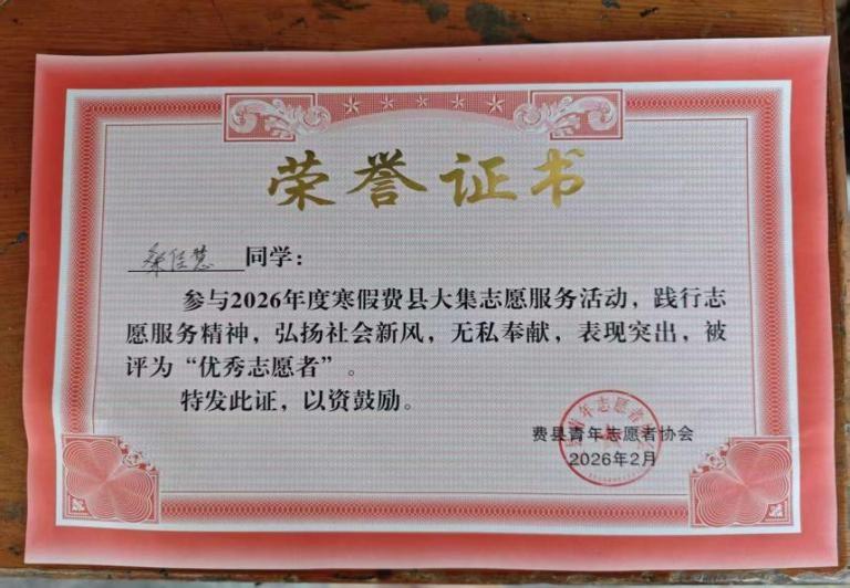 在充满烟火气的冬日里,我三次参与“费县大集”的志愿服务。从最初的紧张忐忑到后来的从容自信,每一次穿上红马甲,都让我对志愿精神有了更深刻的感悟。在前辈的指导下,我熟练掌握了路线指引、特产推介等技能,用耐心与热情为游客提供帮助,在一次次指引与讲解中收获了认可与温暖。从被动协助到主动服务,我不仅提升了沟通表达能力,更学会了担当与奉献。这三次实践,不仅让我收获了“优秀志愿者”的荣誉,更让我懂得志愿服务是一场双向奔赴。在服务他人、奉献家乡的过程中,我收获了成长、传递了温暖,也更加坚定了服务社会的初心。未来,我将继续以志愿之名,传递温暖、服务基层,在乡村振兴与社会服务中贡献青春力量,让青春在奉献中绽放光彩。