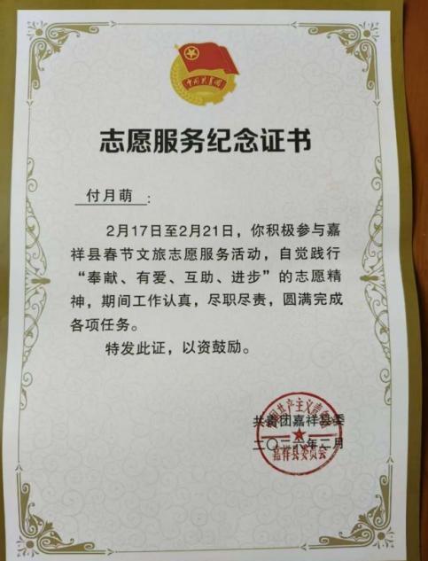 服务期间,我主动承担游客引导、咨询解答、秩序维护等工作,以耐心细致的态度回应需求、化解问题,在实践中锤炼沟通协调、应急处置与服务群众的能力,深刻体会到文旅从业者的责任担当与职业坚守,生动诠释了“奉献、友爱、互助、进步”的志愿宗旨。
