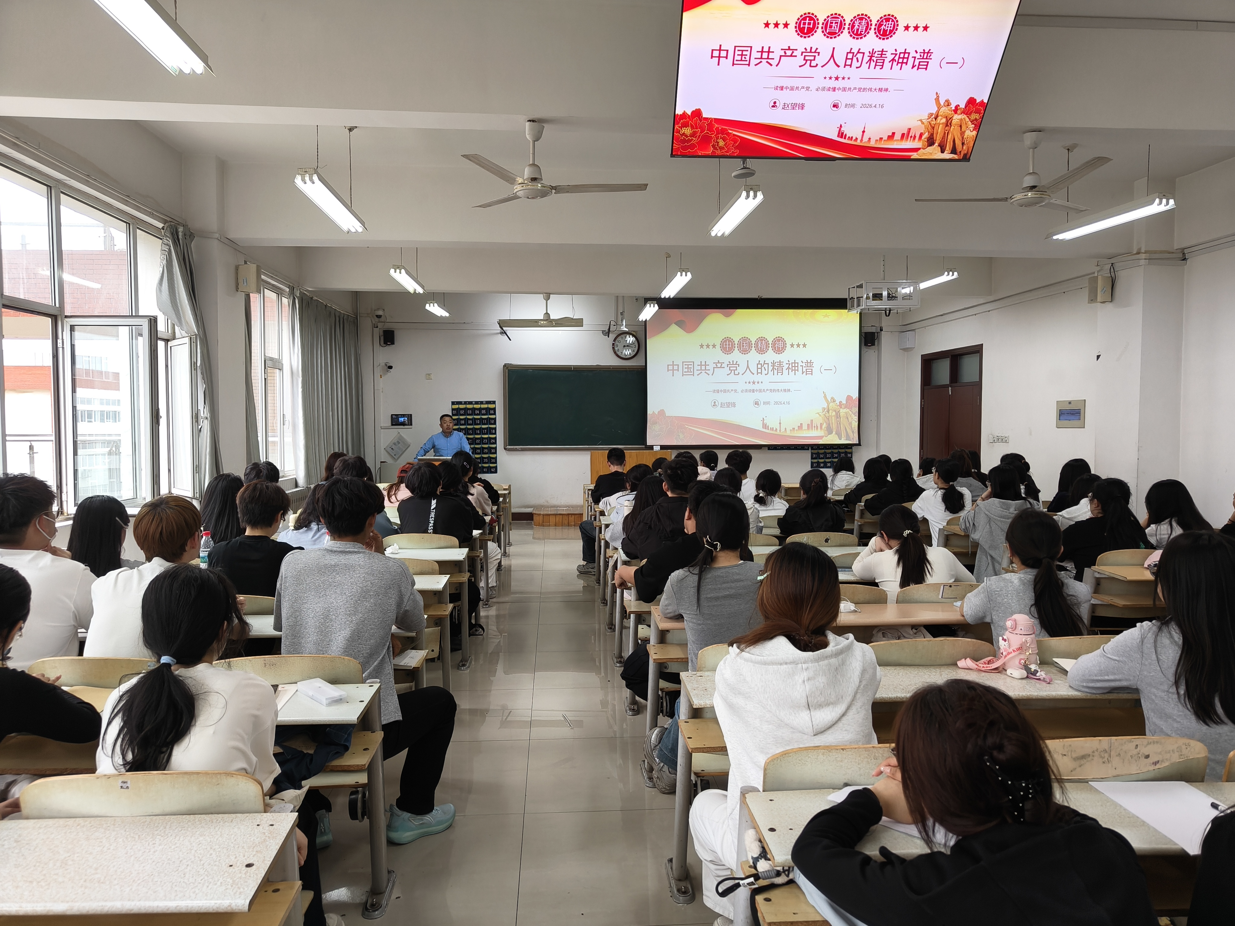 为深入学习贯彻党的创新理论,传承弘扬中国共产党人精神谱系,切实加强入党积极分子思想教育与党性修养,4月16日下午,生物与医药工程学院在9教405教室组织开展2026年上半年入党积极分子培训第二课,主题为“中国共产党人的精神谱系”。学院党委副书记赵望锋主讲,全体入党积极分子共84人参加。